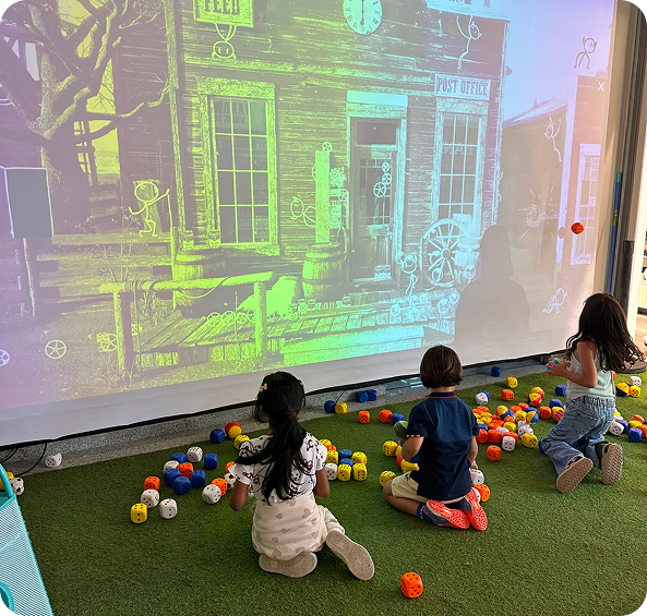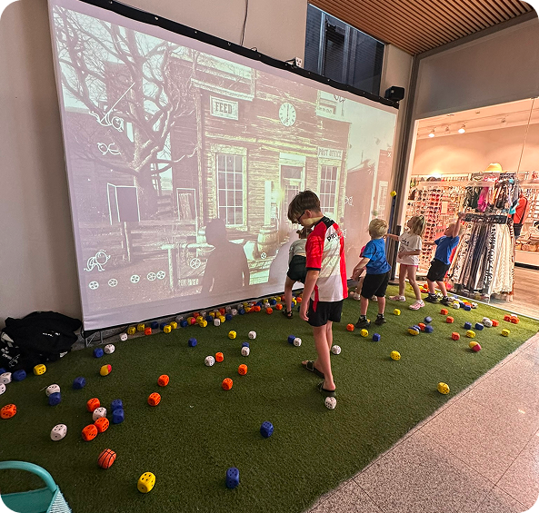 Transformamos uma parede em uma zona ativa para comunicação ou jogos colaborativos, com conteúdo educacional ou institucional personalizado.
